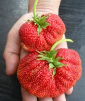 За лето на одном кусте вырастает до 30 плодов. Они имеют ярко-красный цвет и неровную форму с зернистой поверхностью. Благодаря плотной мякоти ягоды выдерживают транспортировку и хранение до 10 дней.