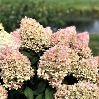 Цветки представлены коническим соцветием крупного размера. Они начинают свое развитие в зеленых или белых оттенках летом, а к осени приобретают насыщенную ярко-розовую окраску. Такое изменение цвета делает это растение еще более привлекательным для любителей гортензий.