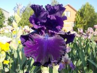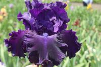 Стандарты интенсивно-фиолетовые. Фолы темно-сине-фиолетовые с пурпурным отливом, широкие, более темные на оборках, с небольшим белым узорным спреем под бородками. Бородки сине-фиолетовые, темно-оранжевые в горле.