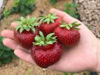 Клубнику Мальвина создали в Германии в 2010 г, как один из самых поздних одноразовых сортов. Растение выглядит шикарно: до полуметра в высоту и ширину. На кустах не менее 5-ти цветоносов с 5-6 обоеполыми цветами. Красивые листья среднего размера тёмно-зелёного цвета с глянцем раскинуты горизонтально, что предотвращает быструю потерю влаги под кустами. Цветоносы прячутся под листьями. Отличительная черта сорта – резные хвостики и сильноопушенные стебли.