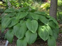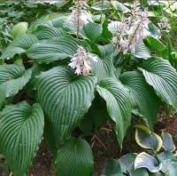 Хоста Ниагара Фолс (SM) - Bill Brincka/Olga Petryszyn 1991г. Листья крупные широкоовальные, плотные, сначала серовато-зелёные, затем меняющие цвет до блестящих темно-зеленых, с глубоким жилкованием (становится более заметным с возрастом), по краю мелкая очень красивая гофрировка. Размер листа 36x27 см. Цветы светло-фиолетовые. Высота цветоноса 120 см. Предпочитает тенистые места.