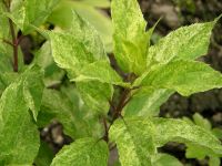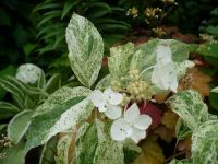 Примечательно, что листья изначально светло-зеленые, а затем приобретают более темный окрас и желто-кремовые размытые крапы. Именно пестролистность придает декоративность кустарнику, находящемуся в состоянии полного покоя. Высота кустарника обычно не превышает 110-120 см, а вот объем у растения внушительный – около 120-130 см. Это обусловлено интенсивным развитием боковых побегов и лиственной массы.