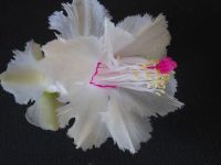 Форма цветов напоминает цветы гвоздики, бахромчатые края лепестков. Прямостоячая шлюмбергера с жесткими сегментами. Нарастает медленно.