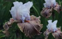 Стандарты нежно – белые с розовым вливанием по главной жилке, фолы цвета кофе со сливками,с нежно коричневыми прожилками. Бородка оранжевая. Гофрированный и немного кружевной. Очень красивая расцветка!